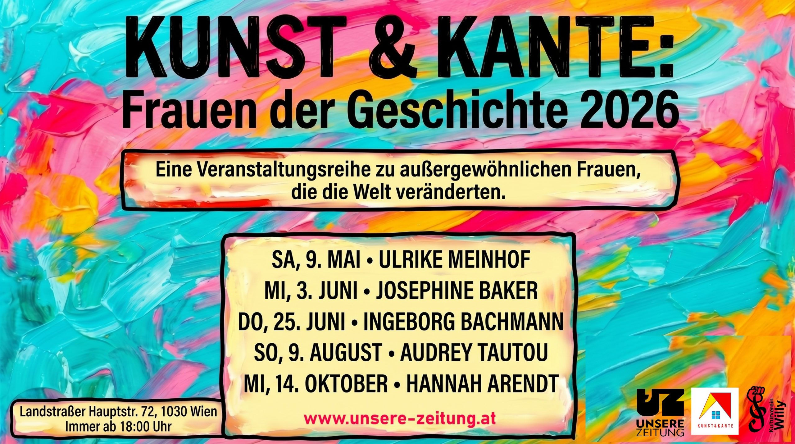 Eine Veranstaltungsreihe zu außergewöhnlichen Frauen, die die Welt veränderten. Kunst & Kante: Hier trifft Kunst auf Haltung, Geschichte auf Gegenwart und Begegnung auf Diskurs.