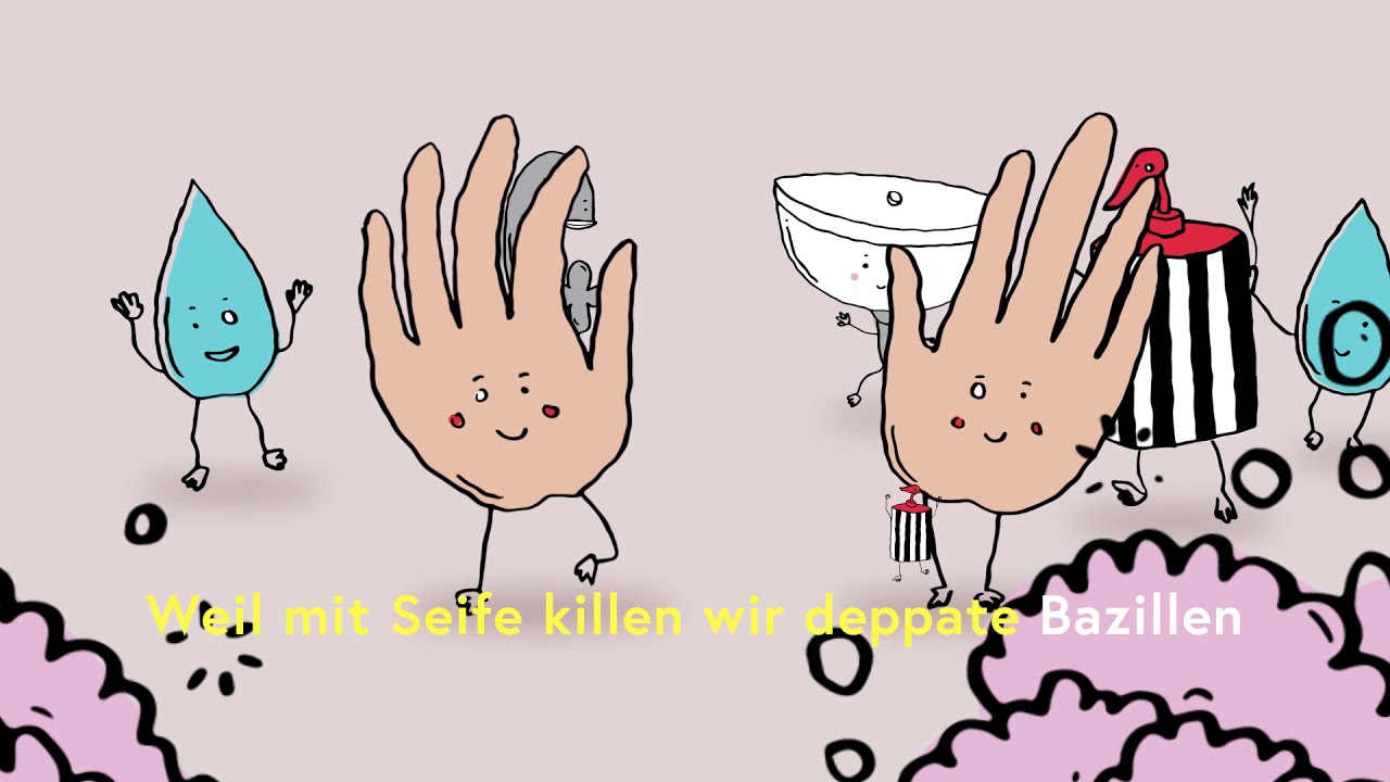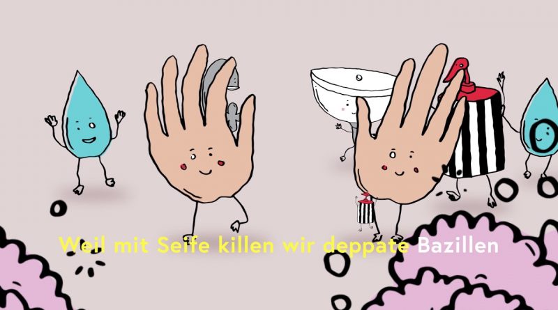 … und eine humorvolle Erinnerung, wie wichtig Hände waschen ist.