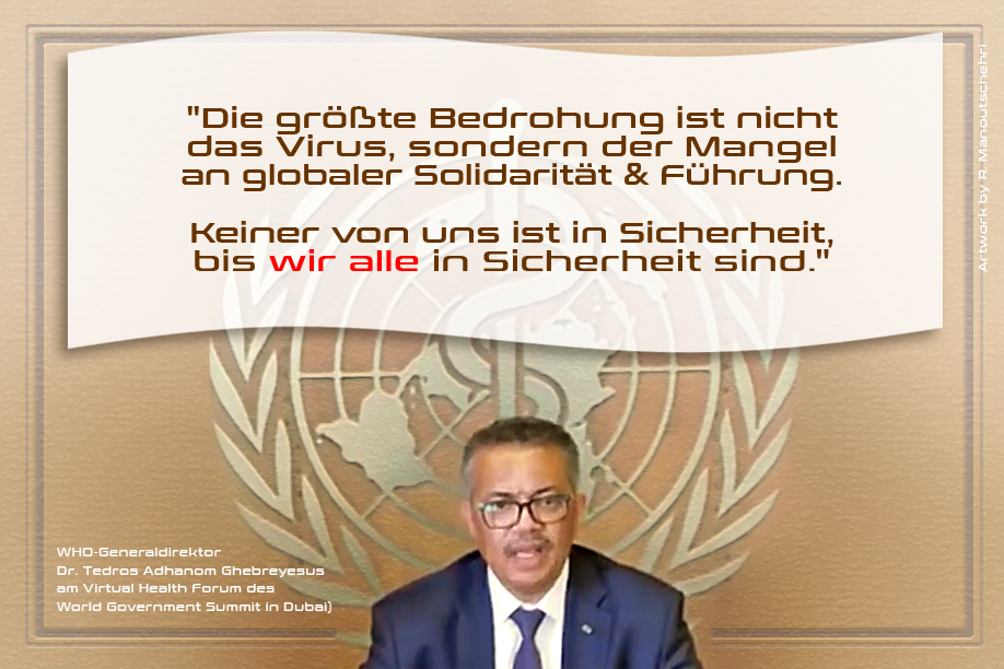 Link zur Video-Konferenz (ab Minute 7 bis Minute 20) WHO-Generaldirektor Dr. Tedros Adhanom Ghebreyesus am 22. Juni am Virtual Health Forum des World Government Summit in Dubai.