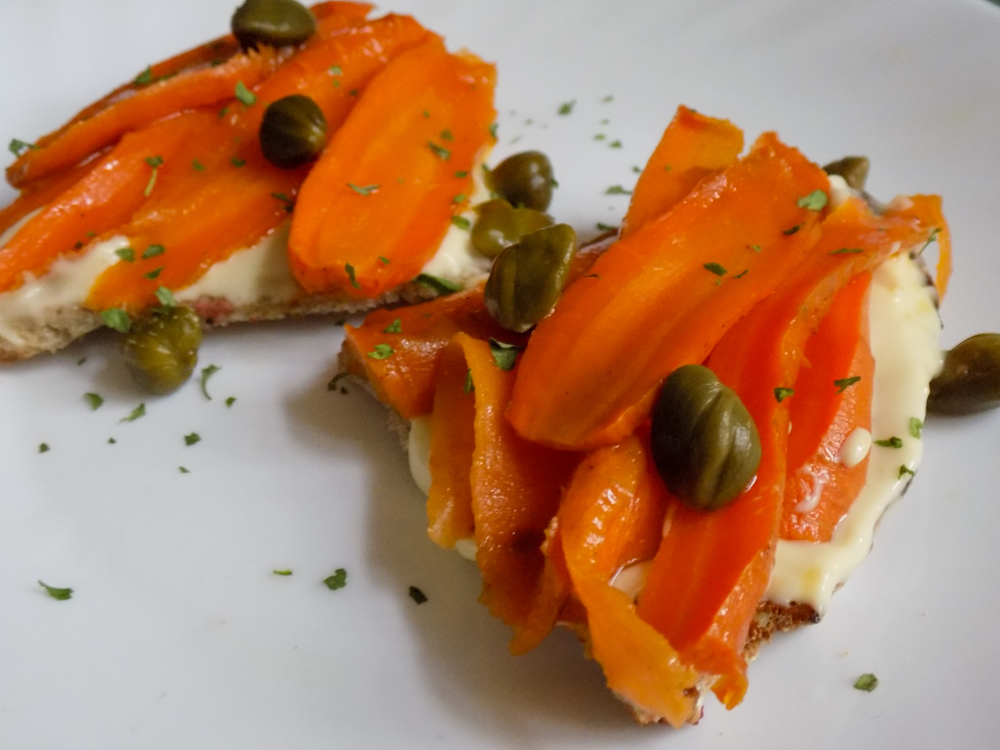 Das nächste Rezept von eathis.org eignet sich ebenfalls gut als festlicher Snack. Veganer Lachs? Ja das geht. Karotten und die richtige Marinade machen es möglich. Dieses Gericht hat meine kulinarische Vorstellungskraft gesprengt, und seitdem freue ich mich auf noch mehr Vielfalt in der veganen Küche. Statt Liquid Smoke kann man übrigens auch Rauchsalz verwenden.