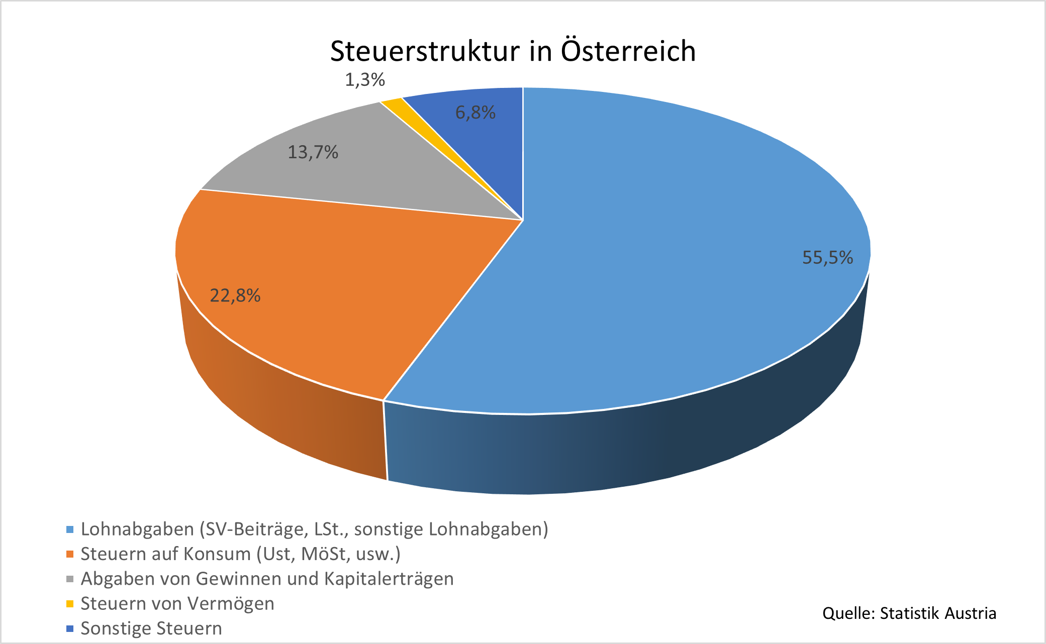 Gleichzeitig ist der Anteil von vermögensbezogenen Steuern in Österreich mit 1,3 Prozent der Steuereinnahmen auch im internationalen Vergleich gering. Eine allgemeine Vermögenssteuer oder eine Erbschafts- und Schenkungssteuer sucht man vergeblich. Fehlende Vermögenssteuern sorgen somit nicht nur für oben genannte wirtschaftliche, soziale und politische Ungleichheit und Machtgefälle. Sie sorgen auch dafür, dass öffentliche Gelder u.a. in den Bereichen Soziale Sicherung (v.a. Alter, aber auch Familien und Kinder, Krankheit und Erwerbsunfähigkeit oder Arbeitslosigkeit), Gesundheitswesen, Bildungswesen und Umweltschutz fehlen.