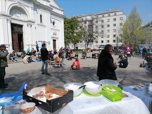 Von oben werde soziale Verwaltung gewünscht. Der Fond Soziales Wien (FSW) zahle nicht „für Empowerment von unten“. Der Auftrag von oben sei ein „anderer als wir ihn verstehen“. Die kleinen früher erkämpften Freiheiten müsse man jeden Tag wieder neu erkämpfen und erstreiten. Es sei nichts, „was man sich von Arbeitgeber_innenseite als normal erwarten sollte“. Man müsse sich dieses Machtgefälles bewusst sein. Organisierung von unten kann nur eine Gegenmacht sein. Der Aufbau dieser Gegenmacht sei „total wichtig“ und brauche auch mal „ewig“, könne „aber auch sehr beständig sein“. Die Unterstützung aus den anderen Betrieben, die nichts mit der Wohnungslosen-Hilfe zu tun haben, zeige, dass dieses Gegenmachtaufbauen langsam aber sicher wirken und funktionieren würde.