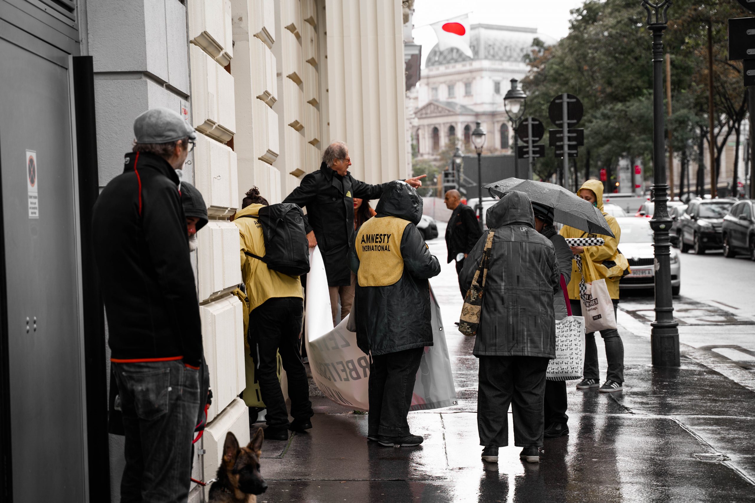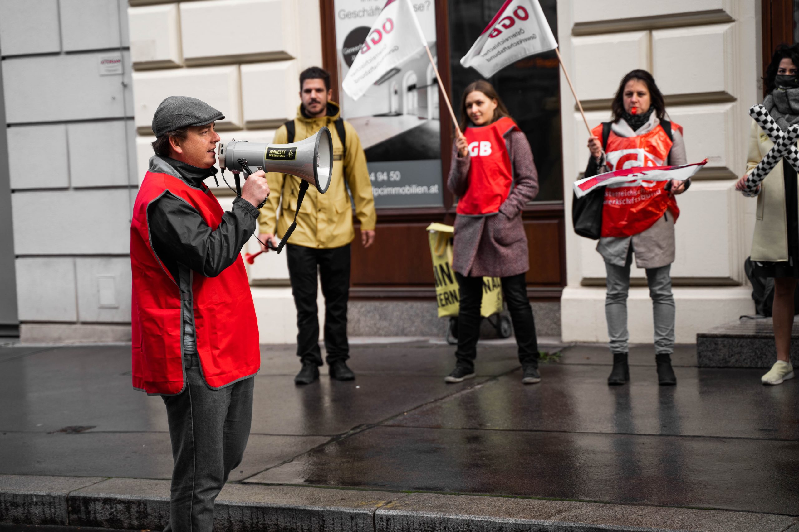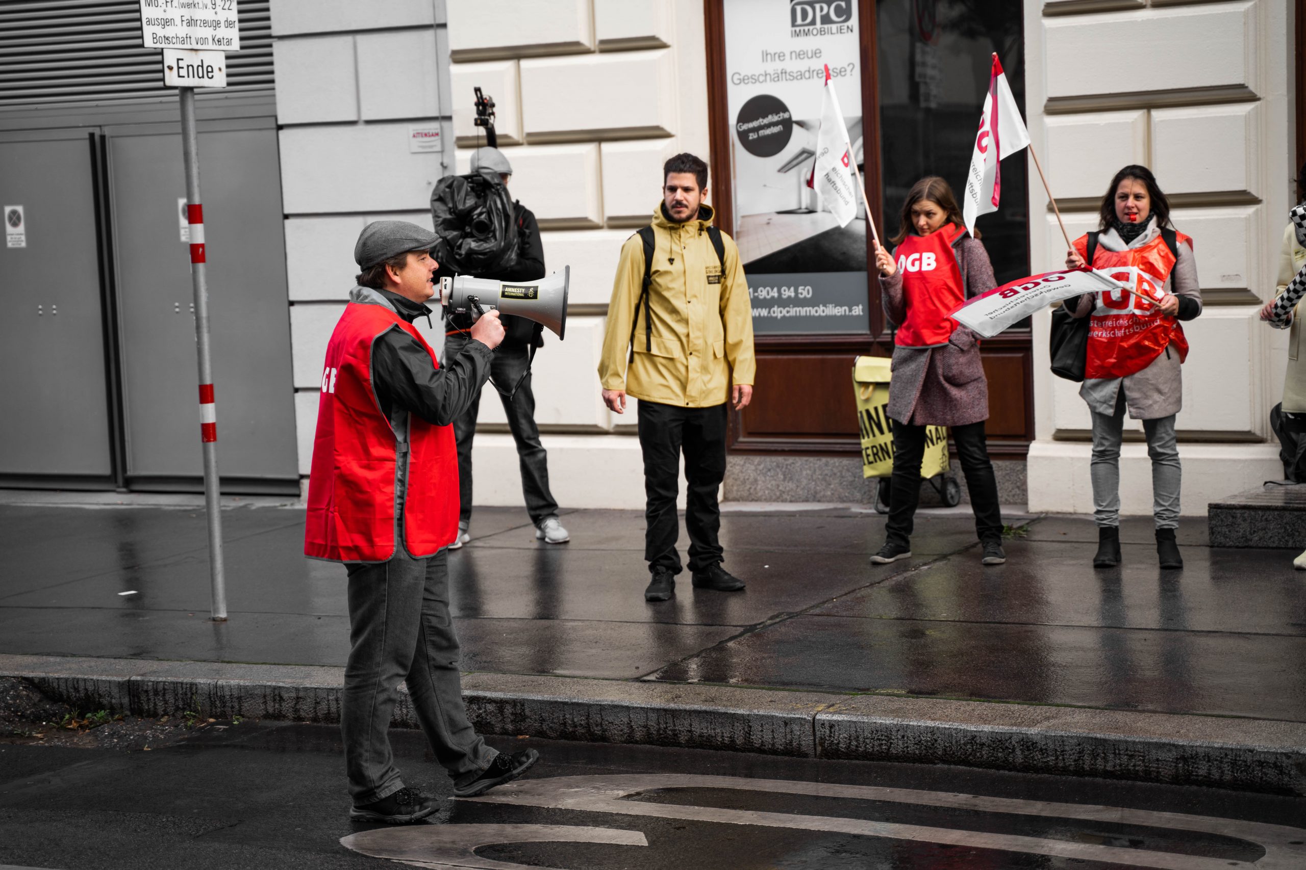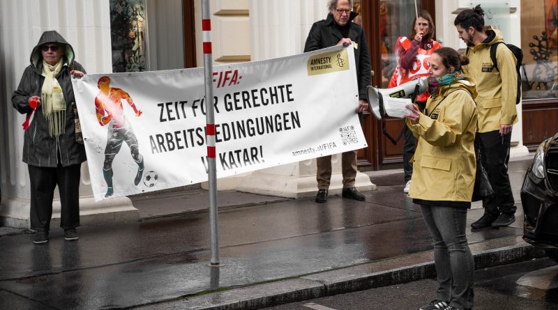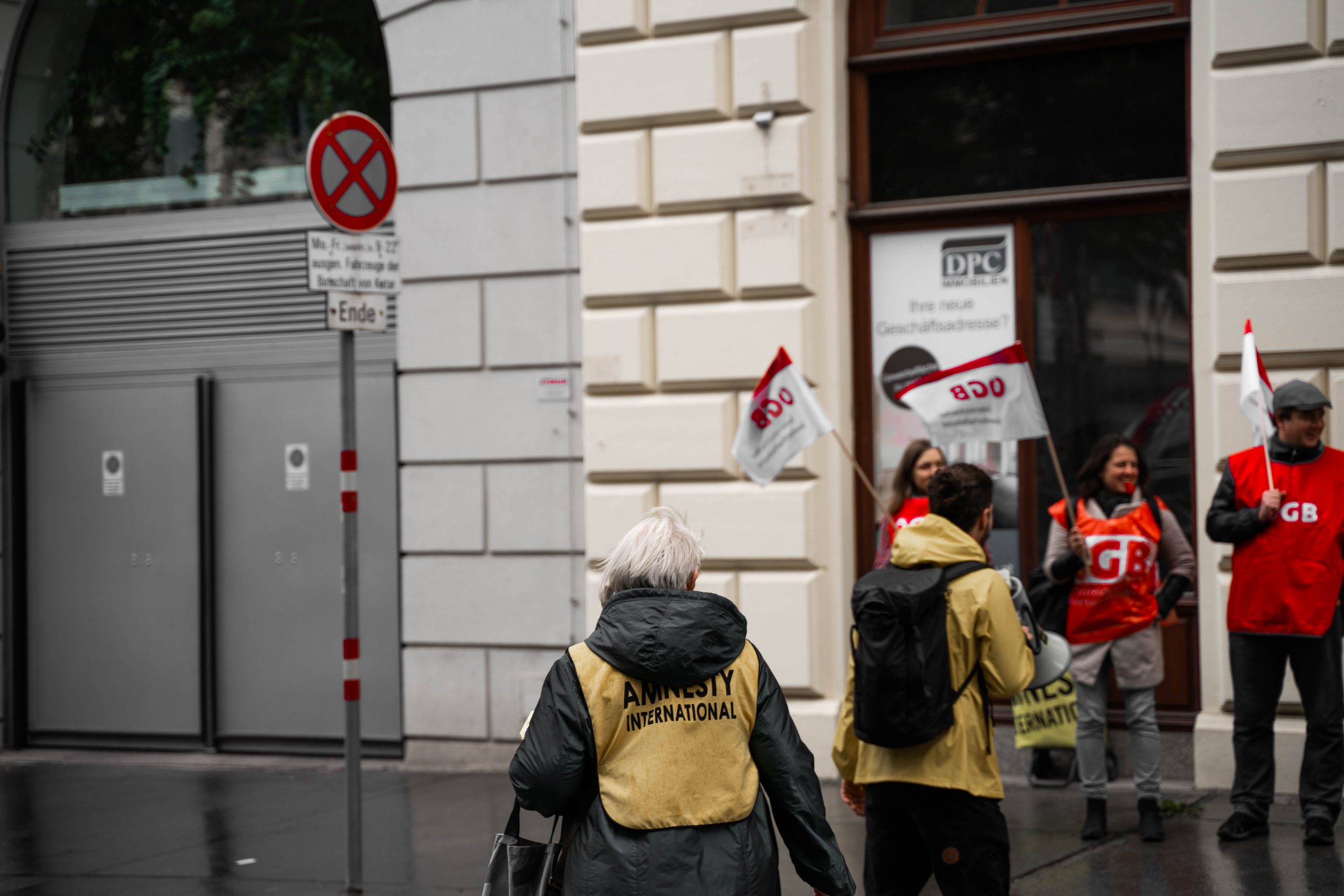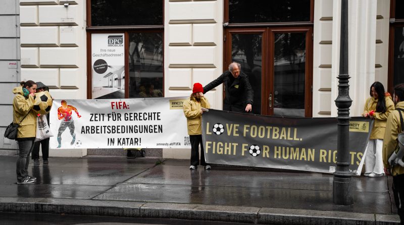 Die Diskussion im ÖGB-Catamaran war nicht die einzige Veranstaltung, die am Dienstag in Wien zu diesem Thema stattfand. Schon am Nachmittag versammelten sich Amnesty International und weltumspannend arbeiten vor der katarischen Botschaft in Wien und äußerten ihren Unmut über die Lage im Emirat.
