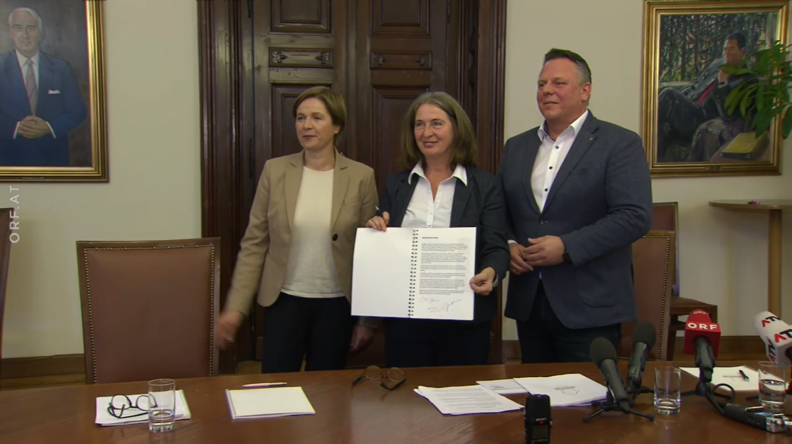 Mit den Unterschriften unter den Koalitionspakt wurde heute Samstag um Punkt 12.30 Uhr in Graz ein neues Kapitel aufgeschlagen. Unter dem Motto Gemeinsam für ein neues Graz. Sozial. Klimafreundlich. Demokratisch. haben sich KPÖ, Grüne und SPÖ auf ein Arbeitsprogramm geeinigt, das exakt ein Monat nach Beginn der Verhandlungen bei einer Pressekonferenz im Stadtsenatssaal präsentiert wurde.