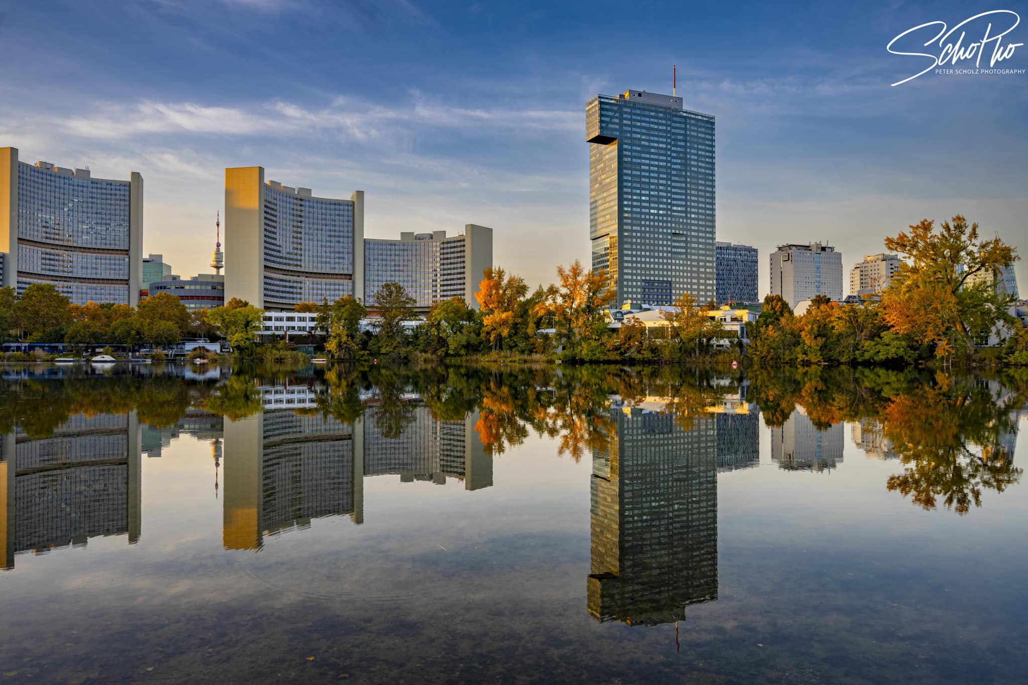 Blick vom Kaiserwasser auf die Skyline knapp vor Sonnenuntergang (27.10.2021) von SchoPho