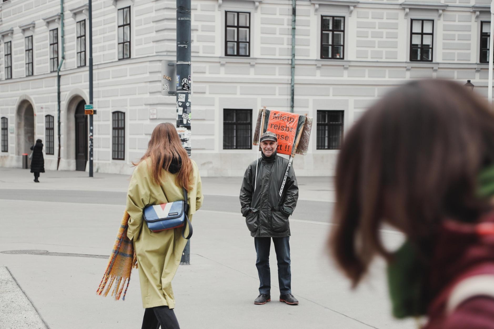 Er sieht anders aus als Greta Thunberg. Er ist kein junges Mädchen, sondern ein älterer Herr. Doch es gibt Gemeinsamkeiten. Er protestiert. Alleine. Für eine größere Sache. Deswegen nennt er sich „Petar Thunberg“, erklärt er mit einem Lächeln. Ein Pensionist im Kampf für die Mietpreisbremse.