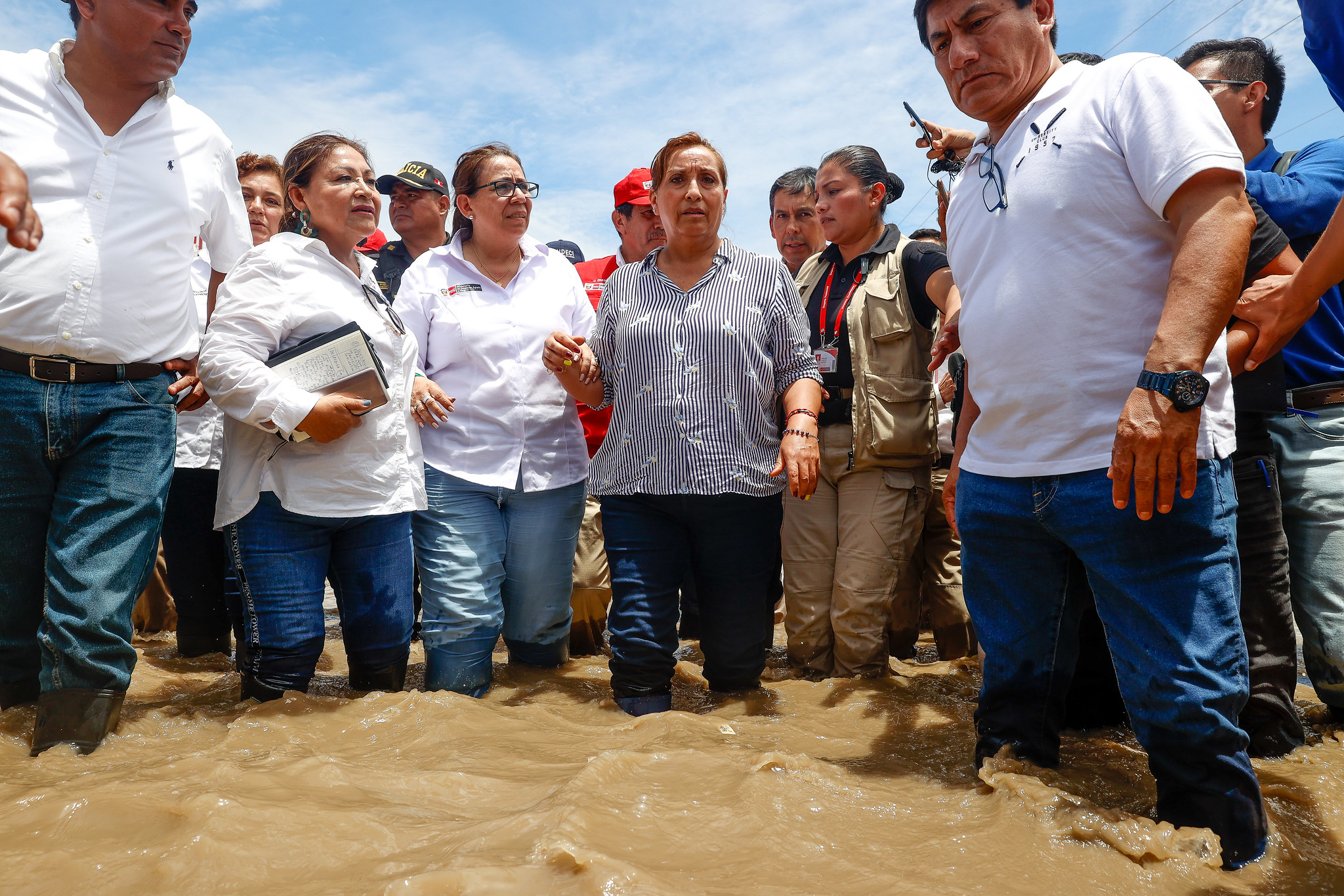 Titelbild: Perus Präsidentin Boluarte knietief im Wasser. Dennoch wurden für Peru Hitze und Trockenheit als gefährlichste Gesundheitsrisiken identifiziert. Foto: Presidencia Perú. Fotos Publicas / CC BY-NC 2.0