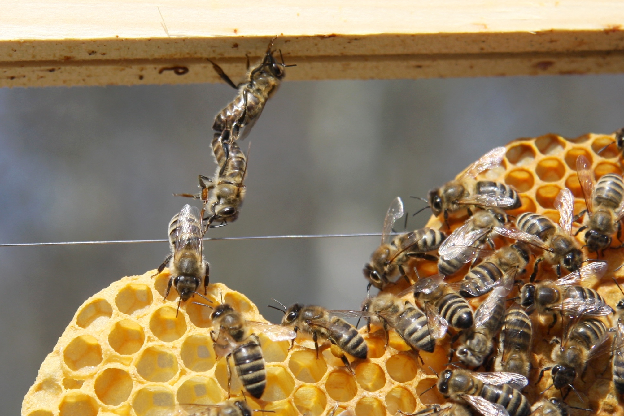 Titelbild: Baukette aus Bienen. Foto: Maja Dumat from Deutschland (Germany), CC BY 2.0, via Wikimedia Commons