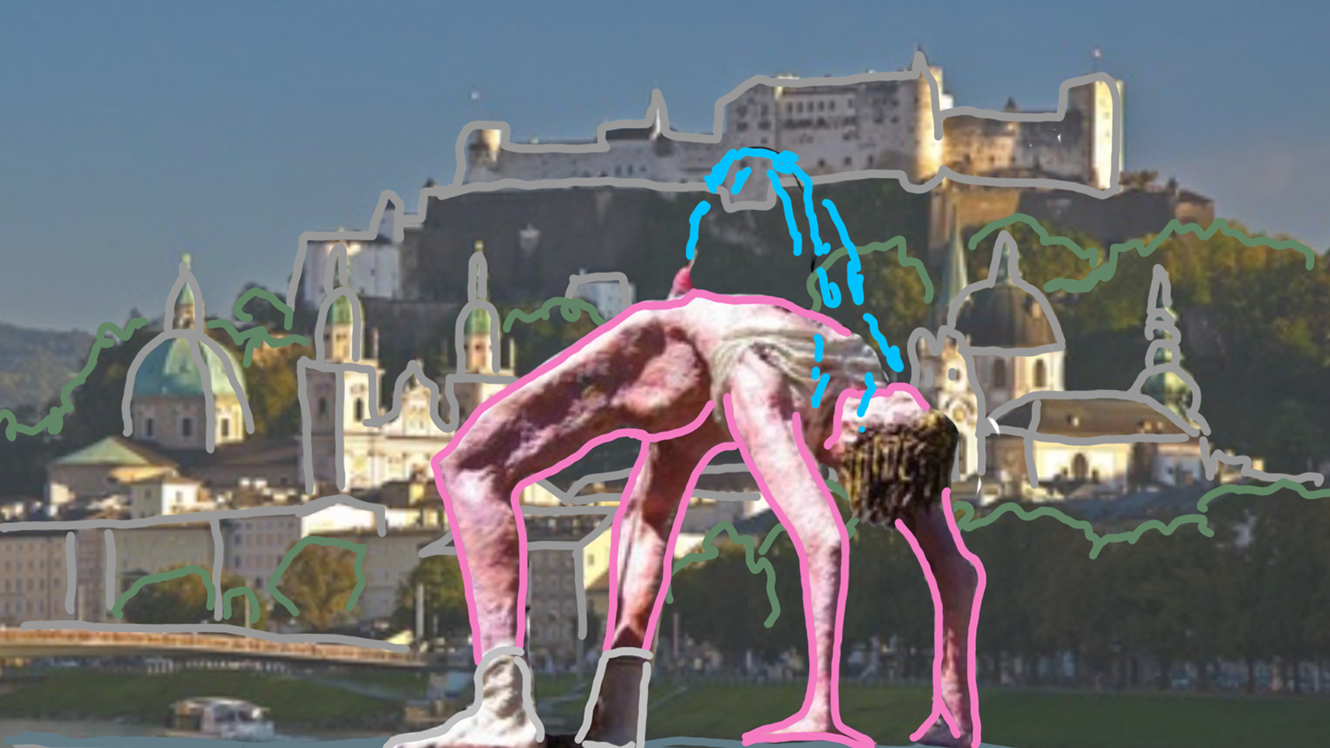 Die sich damals „Gelatin“ nennende Künstlergruppe stellte in der Festspielstadt Salzburg eine von ihr geschaffene Plastik auf, die als „Arc de Triomphe“ betitelt, öffentliche Ärgernis erregte. Eine übermannsgroße Skulptur eines Brücke schlagenden Mannes reckte an der Spitze des körperlichen Gewölbebogens einen erigierten Penis empor, der so aufgestellt am Max-Reinhardt-Platz vor dem Rupertinum in Salzburg als Wasserspeier fungierte.
