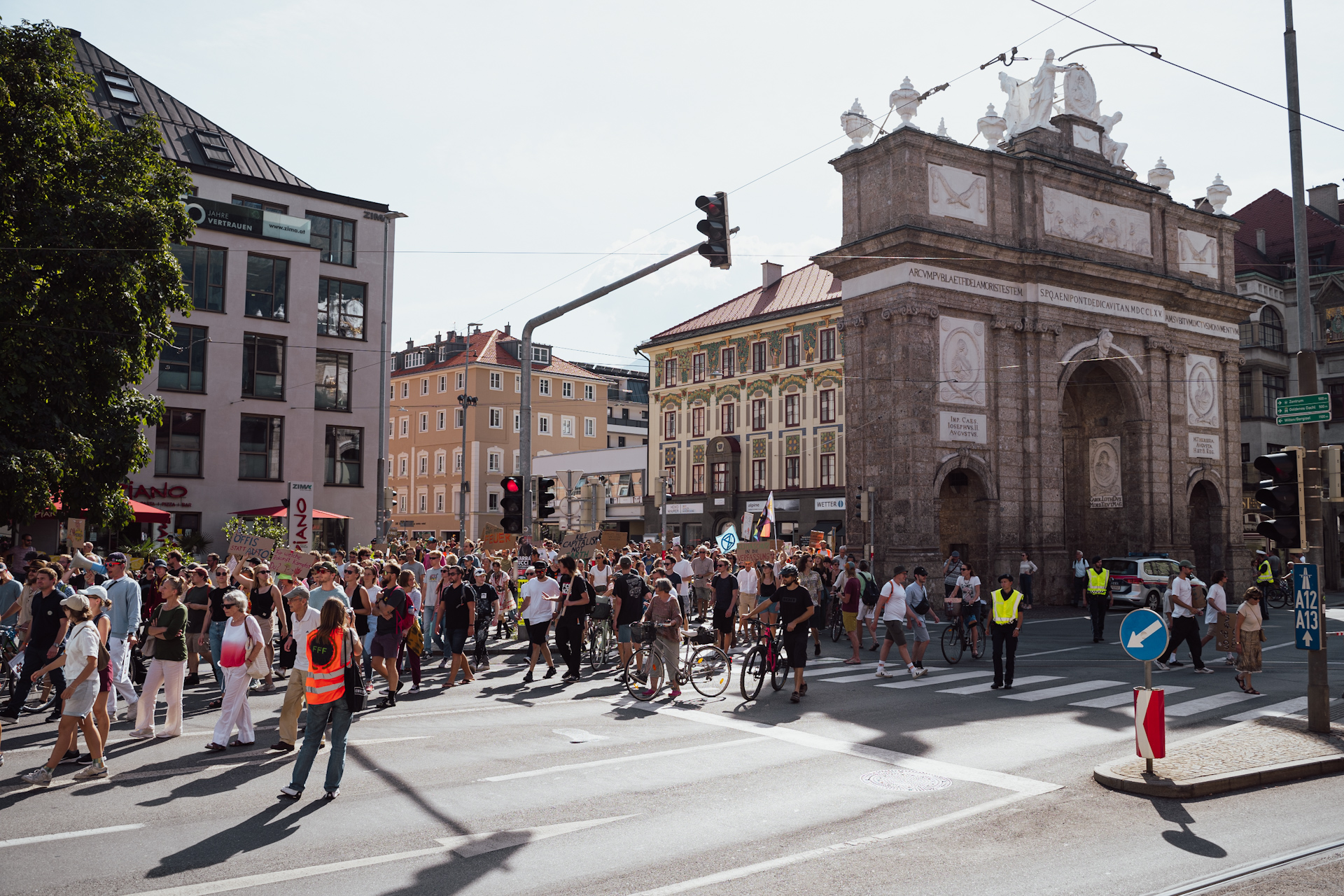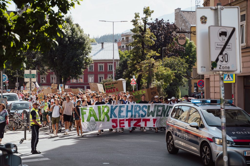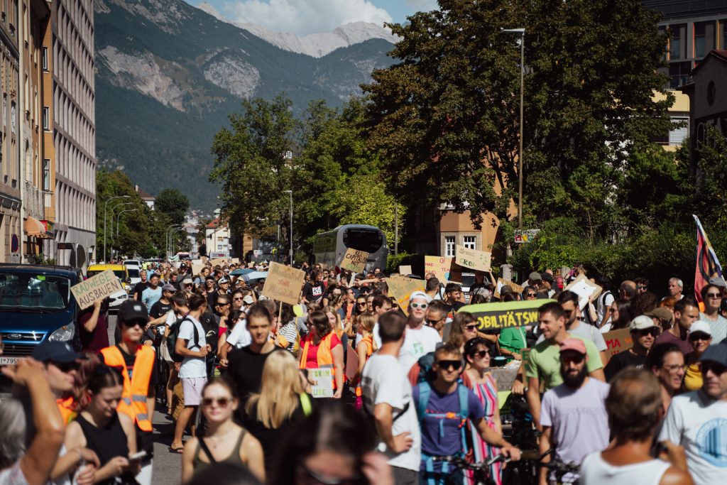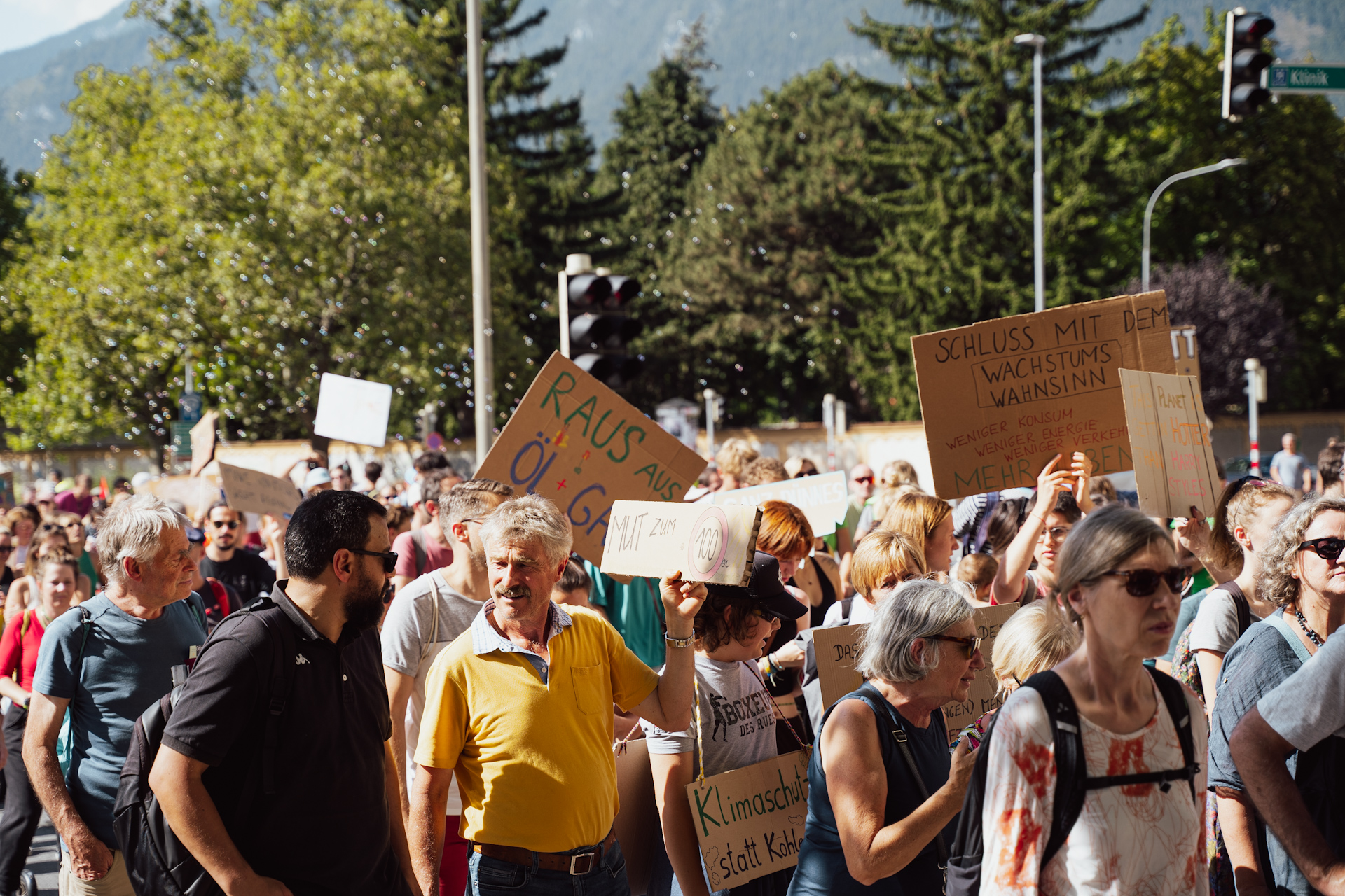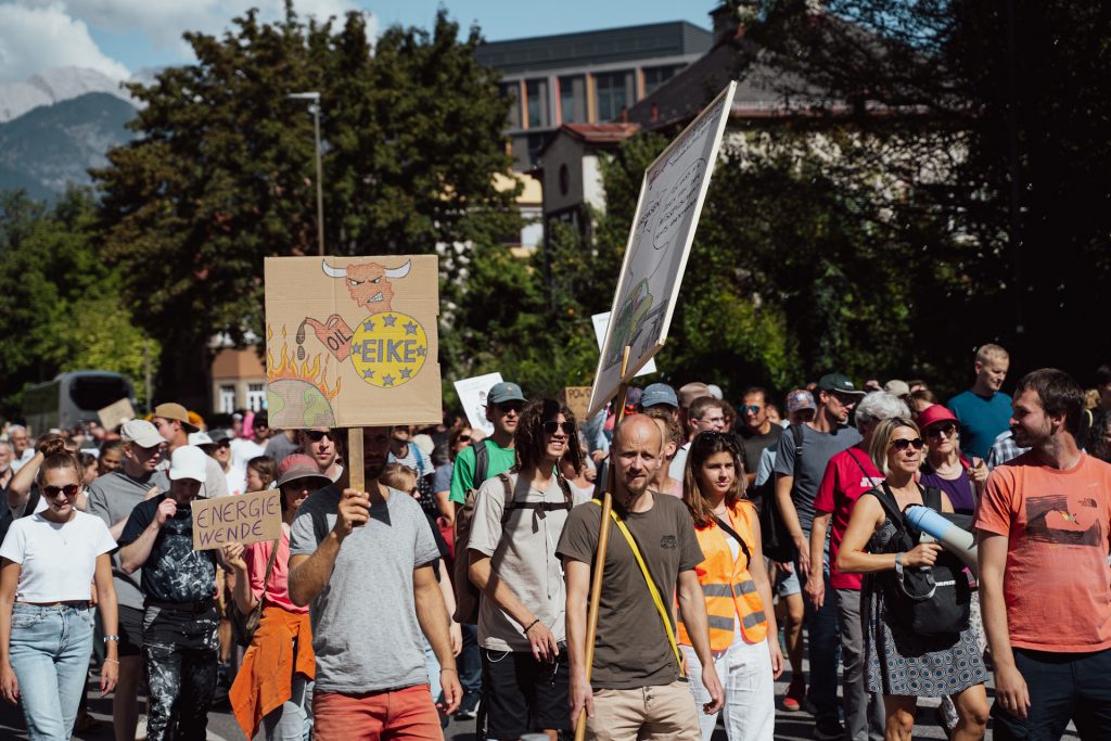 Rund eintausend Menschen gingen am Freitag in Innsbruck für mehr Klimaschutz auf die Straße. Wir haben Eindrücke von der Demonstration für euch gesammelt.