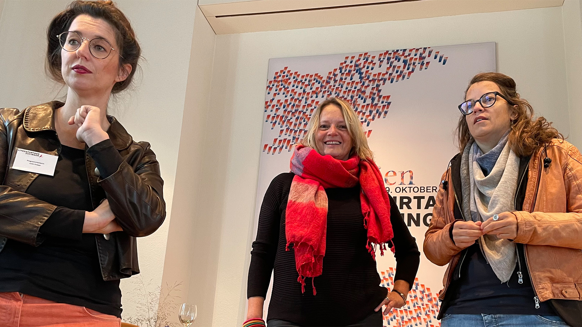Titelbild: Im Einsatz für die Literatur: Julia Knapp (Programmleiterin), Sabine Schirle (Präsidentin) und Rebekka Salm (Autorin und Moderatorin) Foto: Urs Heinz Aerni