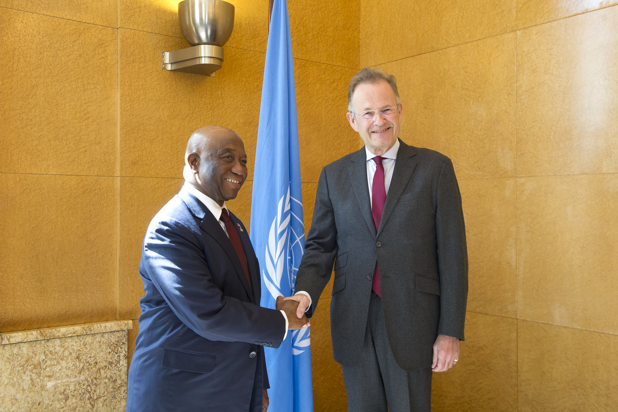 Titelbild: Joseph Boakai (links), damals Vize-Präsident, im Jahr 2017 bei den Vereinten Nationen in Genf. Foto: UN Photo / Violaine Martin auf Flickr / CC BY-NC-ND 2.0 DEED