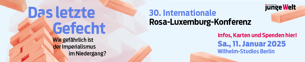 Der Konferenztitel erinnert an die Zeilen »Auf zum letzten Gefecht! Die Internationale erkämpft das Menschenrecht« aus der weltbekannten Hymne von 1871. Doch während die darin beschworene Revolution zur Befreiung der Arbeiterschaft und zur Errichtung des Sozialismus hierzulande nicht absehbar ist, werden wir im Weltmaßstab Zeugen des Aufstiegs des Globalen Südens, allen voran der Volksrepublik China. Die multipolare Weltordnung eröffnet Chancen zur Abschüttelung neokolonialer Fesseln und politischer Abhängigkeiten. Die Referentinnen und Referenten der 30. Internationalen-Rosa-Luxemburg-Konferenz (Vorträge ab 11.00 Uhr) zeigen aber auch auf, dass die Herrschenden in den imperialistischen Zentren den Verlust von Macht und Privilegien nicht kampflos hinnehmen, sondern auch auf die faschistische Karte setzen und der US-geführte westliche Block zum großen Krieg rüstet. Ein dritter Weltkrieg aber könnte zum »letzten Gefecht« der Menschheit werden.