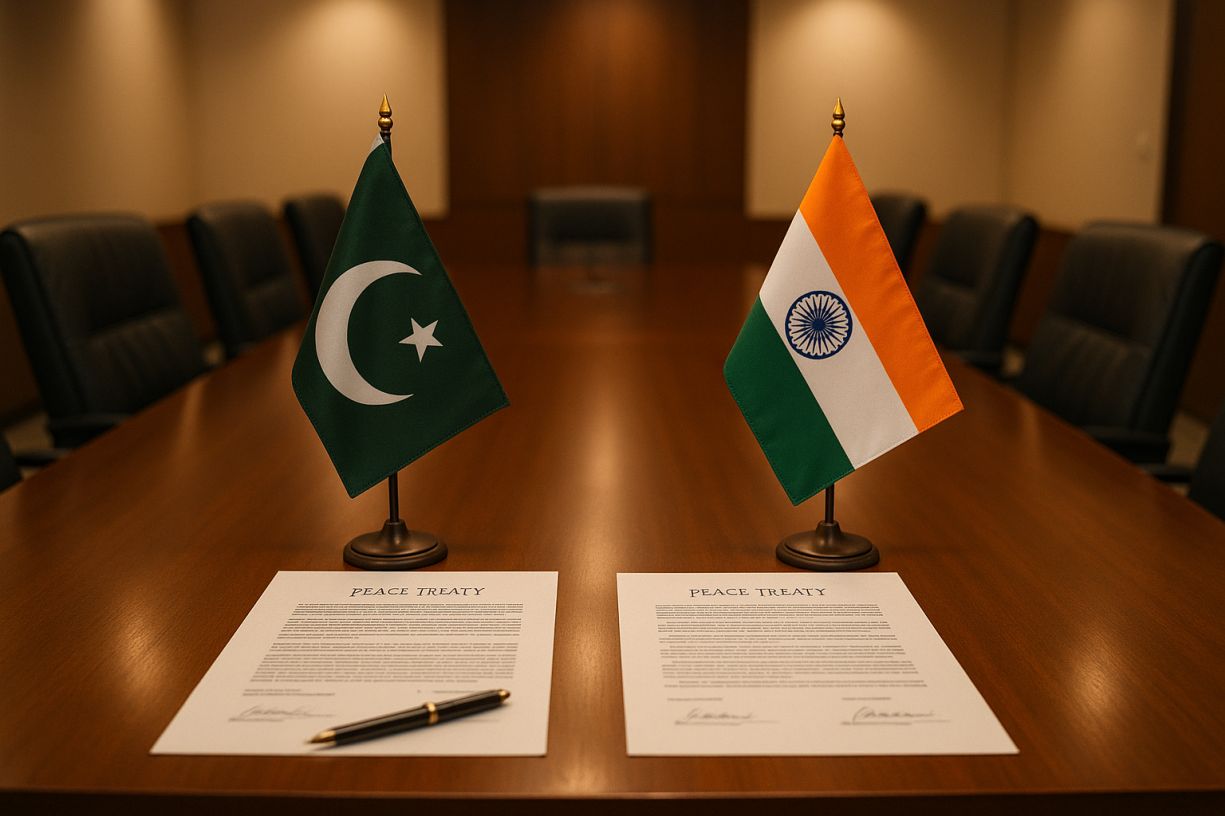 Titelbild: KI-generiert mit genspark.ai (Symbolbild für Diplomatische Verhandlungen zwischen Pakistan und Indien)