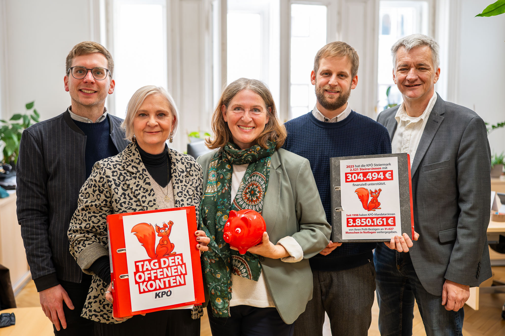 Graz/Steiermark – Während Politikerbezüge österreichweit regelmäßig für Diskussionen sorgen, spenden die steirischen KPÖ-Mandatare seit 27 Jahren den Großteil ihrer Gehälter an Menschen in Notlagen. Am traditionellen „Tag der offenen Konten“ präsentierten Bürgermeisterin Elke Kahr, die Grazer Stadträte Manfred Eber und Robert Krotzer sowie Klubobfrau Claudia Klimt-Weithaler und Landesvorsitzender Alexander Melinz die Jahresbilanz 2025.