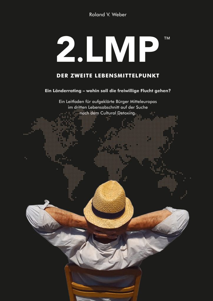 Das Buch: «2.LMP – Der zweite Lebensmittelpunkt – Ein Länderrating – Wohin soll die freiwillige Flucht gehen?» von Roland V. Weber, 978-3-9525508-1-6, im Buchhandel oder direkt bei www.arsremata.ch.