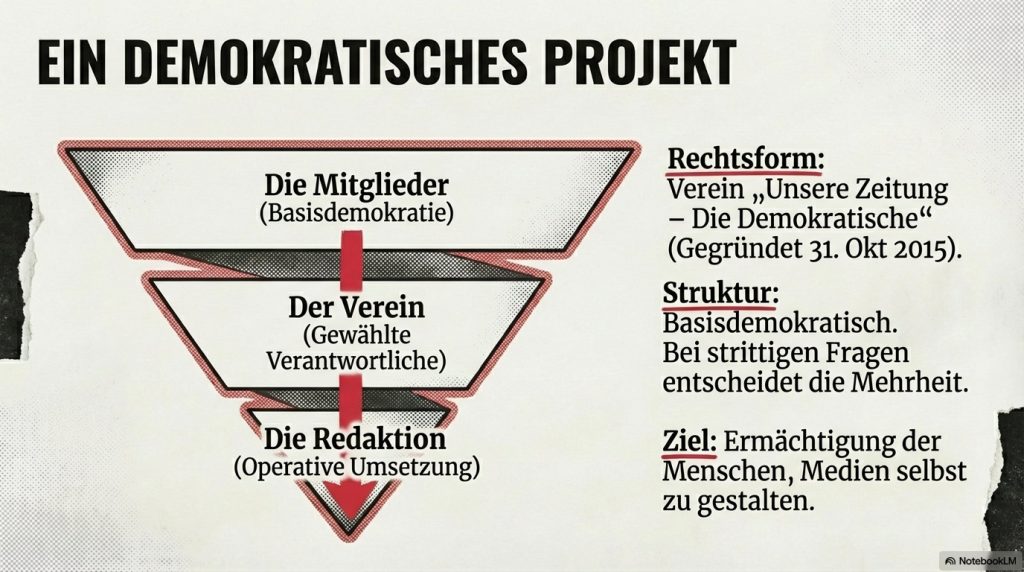 Unter dem Motto „Wir gestalten Unsere Zeitung!“ versammelten sich am vergangenen Samstag bestehende Mitglieder und Interessierte zur Generalversammlung des Vereins „Unsere Zeitung – DIE DEMOKRATISCHE.“, der seit 2015 als Träger für das Online-Zeitungsprojekt eine stabile organisatorische und finanzielle Grundlage schafft. Neben den formalen vereinsrechtlichen Notwendigkeiten stand dabei vor allem der Austausch über die künftigen Aktivitäten von Unsere Zeitung im Mittelpunkt.
