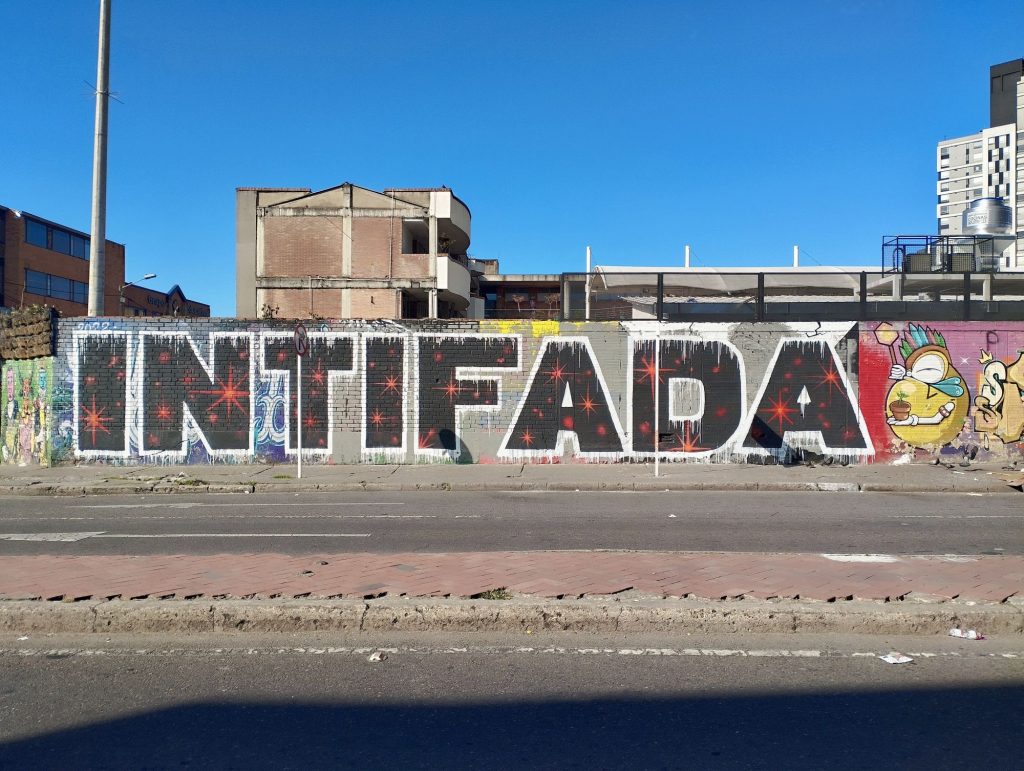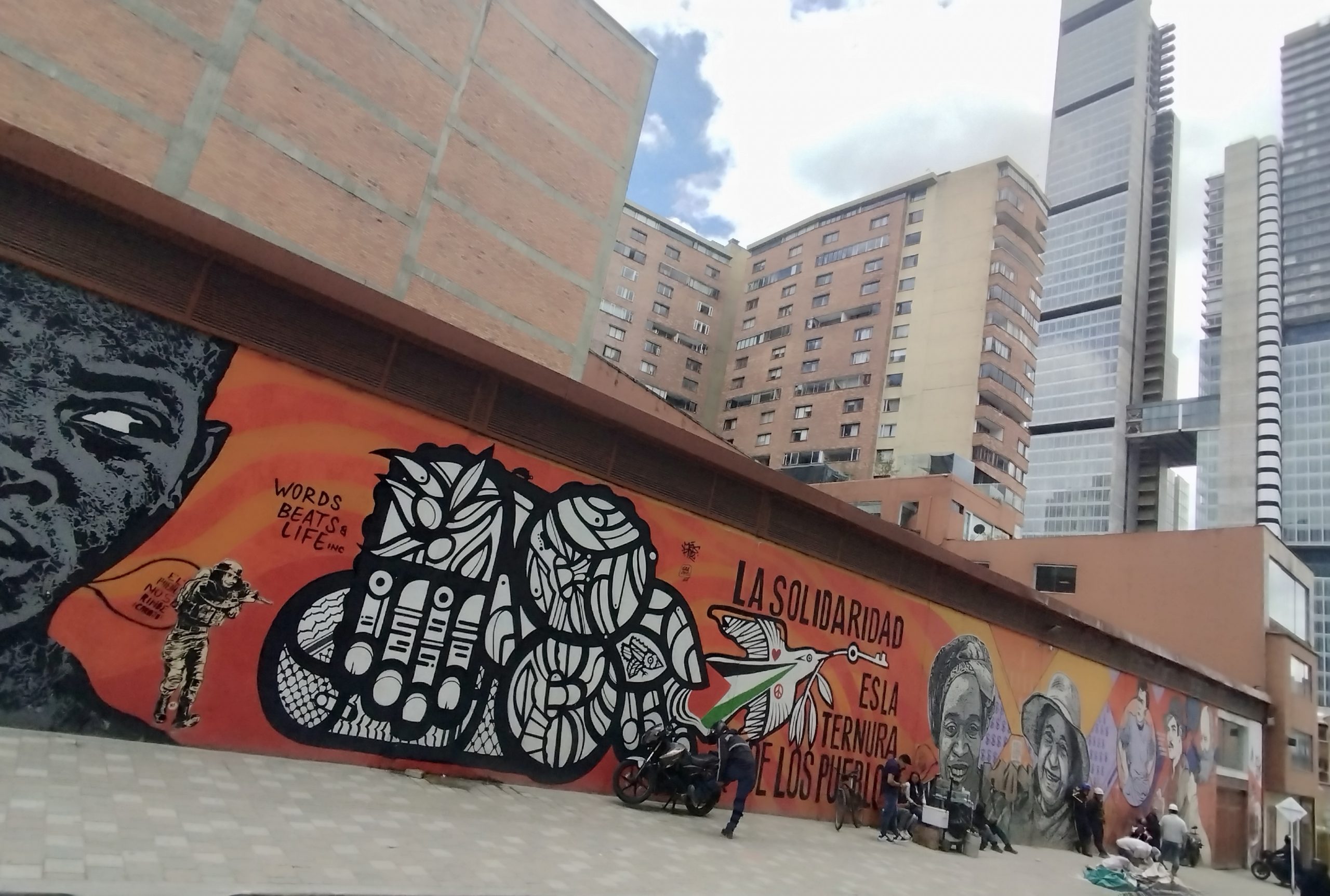 Titelbild: Wandgemälde im Zentrum Bogotás: „Solidarität ist die Zärtlichkeit der Völker“ (Foto: Elias Korte)